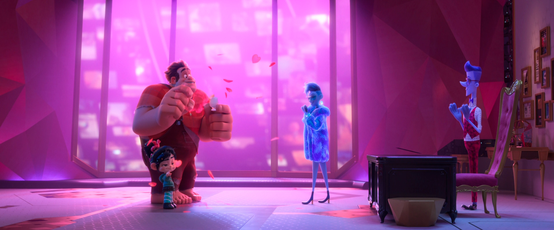 Классный мультик, мне очень понравился. Он мне еще на испанском понравился - прям наслаждался тем, как остроумно нарисован весь этот мультяшный Интернет. А когда еще и посмотрел в оригинале, так оно еще добавило прелести, потому что и два главных персонажа совершенно шикарно озвучены Джоном Си Райли и неистовой Сарой Сильвермэн, да и несколько второстепенных персонажей именно с точки зрения озвучки были просто блеск: гонщица Шэнк - Галь Гадот, рекламный попап Джей Пи Спамли - Билл Хэйдер, воротила Даркнета Дабл Дэн - Альфред Молина, поисковик "Знает больше" - Алан Тьюдик и руководительница видеохостинга Йесс - Тараджи Пи Хенсон.