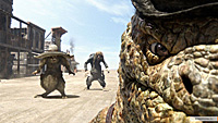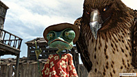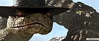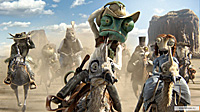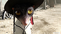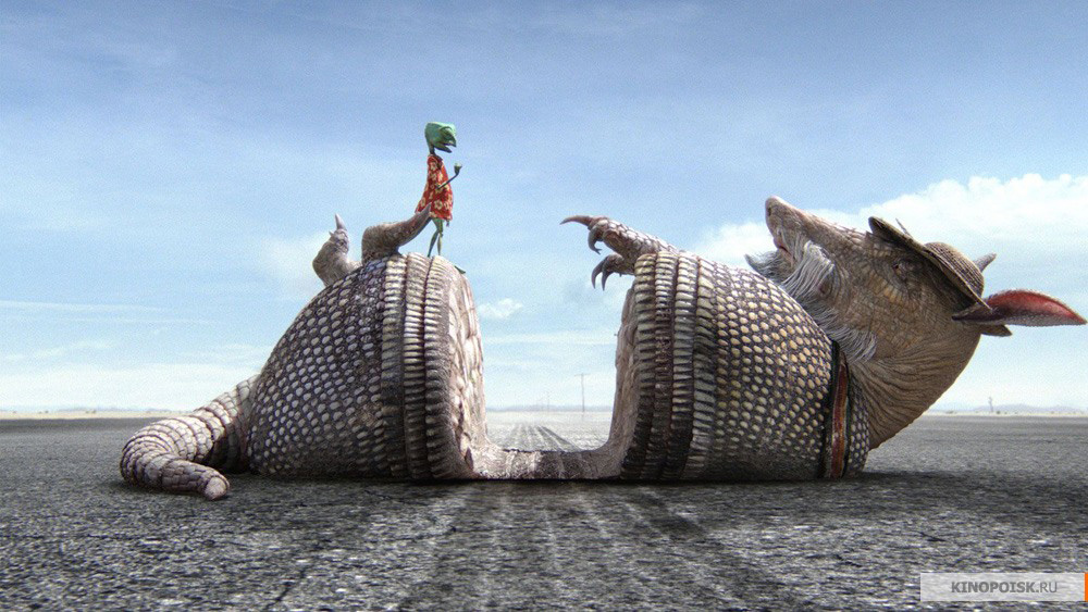 Причем начинается это все как какой-нибудь скучноватый "Вольт" - сугубо домашний рефлексирующий хамелеончик из привычной среды обитания неожиданно вылетает в зловещую пустыню, где его ждут страшные приключения, и я поначалу думал, что Вербински так и пойдет этой проторенной дорожкой о том, как хамелеончик встретит Настоящих Друзей, справится с Опасностями и, в конце концов, все-таки вернется в свой родимый аквариум, однако, к моей радости, выяснилось, что в пустыне нет одной единой дорожки, а есть куча всевозможных направлений, по которым Вербински и поскакал, причем так лихо, что нам с Бубликом только и оставалось что глотать поднятую им пылищу, как на какой-нибудь гонке "Минт", и аплодировать.
