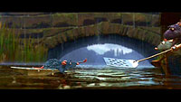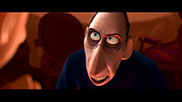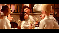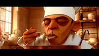 С людьми - еще веселее. С одной стороны, люди, как бы в противовес крысам, нарисованы достаточно схематично: даже тот же главный герой Лингвини - плоский, явно мультипликационный, да и с мимикой у него все довольно бедненько, как будто мультяшного человечка приставили к совершенно живой крыске. Однако злодейский шеф-повар Скиннер - вот у него совершенно потрясающая мимика, и я в мультипликационном фильме никогда не видел ничего подобного!