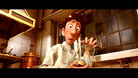 В столице Реми, повинуясь мечтам детства, нашел заведение "Гюсто", однако выяснилось, что знаменитый повар уже отбыл в мир иной, не вынеся уничижительного отзыва знаменитого ресторанного критика Антона Эго (Питер О'Тул). Теперь рестораном мэтра заправляет злобный карлик непонятного происхождения по фамилии Скиннер (Йен Хольм), который мало того что значительно снизил качество блюд, но и еще кощунственно продвигает всякую фастфудную мерзость под брендом "Гюсто", за что его просто нужно пустить на лягушачьи лапки.