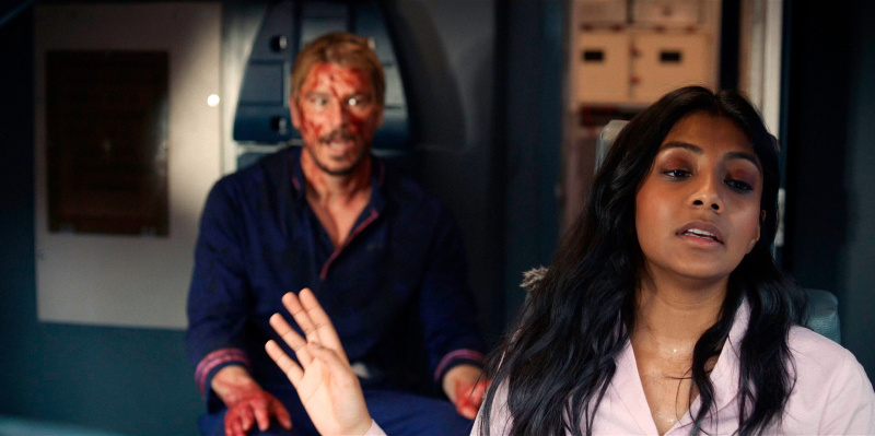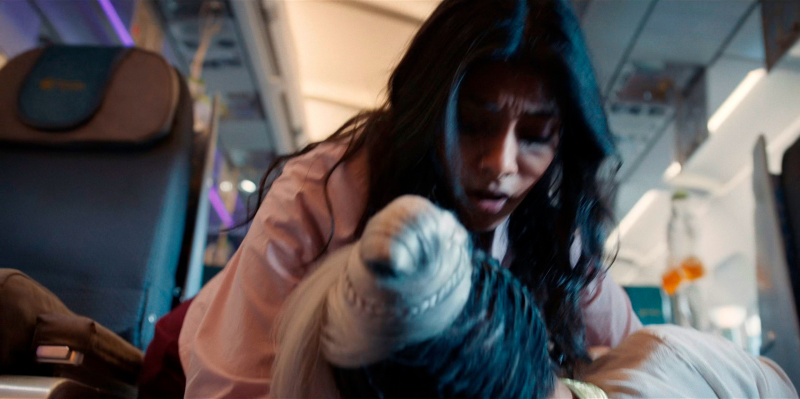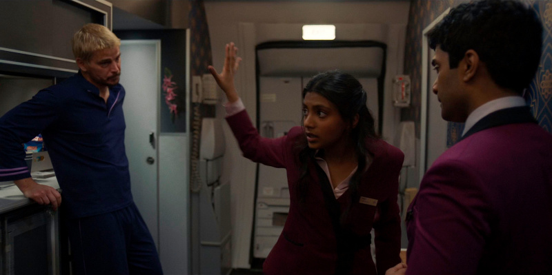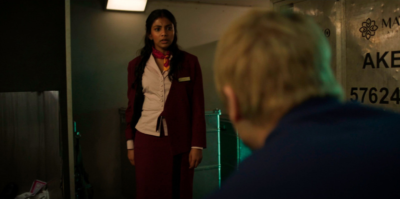 Из самолетных персонажей отметим боевую стюардессу Ишу, которую хорошо сыграла Чаритхра Чандран: она и очень симпатичная, и конкретно боевая, а также ненадолго вышедшего на первый план гламурного убийцу Чайена (Марко Сарор), который был очень забавен, но его надолго не хватило.