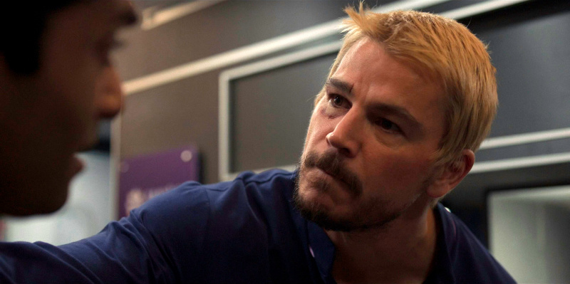 На земле за поддержание сюжета на должном уровне дурдома отвечали Кэти Сакхофф, вполне забавно сыгравшая Кэтрин Брант, и болгарин Юлиан Костов, сыгравший ее подчиненного - слегка истеричного спецагента Эрона Хантера, - а ведь он только что играл простого русского парня в третьем сезоне "Белого лотоса".