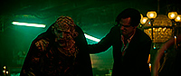 Кейдж тут - действительно очень хорош! Он, с одной стороны, копирует образ Дракулы из оригинального фильма 1931 года, где его играет Бела Лугоши, с другой стороны, Николас сам признавался в том, что каноническим Дракулой он считает Кристофера Ли (тот сыграл Дракулу в фильме 1958 года, а потом изображал этого персонажа еще в девяти картинах), но при этом надо отдать должное Кейджу - в эту роль он немало внес собственной личности, потому что здесь Дракула - это все-таки именно Кейдж, и даже определенное переигрывание (глупая претензия для явно пародийного фильма) - оно только идет на пользу картине, и у Кейджа тут одна из лучших ролей за последние, наверное, лет десять.