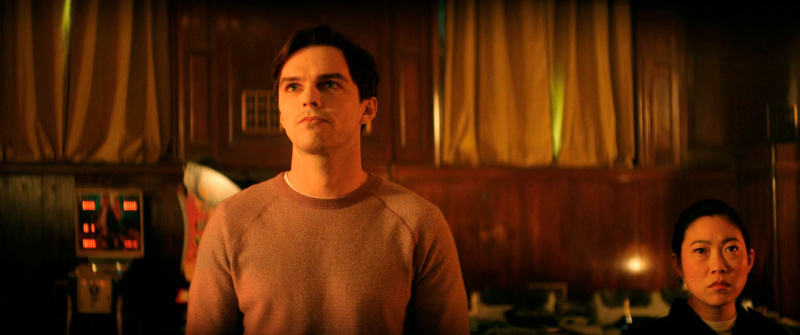 Николаса Холта я помню по неплохим, хотя и вполне второстепенным ролям в "Меню" и "Банкире" (он еще в дурацком фильме "Фаворитка" играл, но там я его не запомнил). В некоторых рецензиях пишут, что он тут главную роль совсем не потянул - я с этим не согласен, Холт тут как раз вполне неплох и, на мой взгляд, главную роль он как раз потянул, мискастингом я это никак не назову. И я даже не могу сходу назвать, какого актера я бы хотел увидеть в данной роли, потому что в рамках поставленной задачи Николас отыграл все, как полагается, мне даже понравилось.
