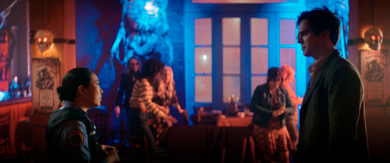 Но это все - такой же стеб, поэтому и полицейскую играет Аквафина, у а нее всегда персонажи буффонадные, даже когда она изображает какую-то типа как крутотень, да и противостоящая ей банда - откровенная группа клоунов на выходе, начиная от "мамаши Бейкер" Беллыфранчески Лобо (Шохре Агдашлу), стальной рукой правящей бандой, и заканчивая ее придурком-сыночком Тедуардом, в роли которого забавно комиковал Бен Шварц.