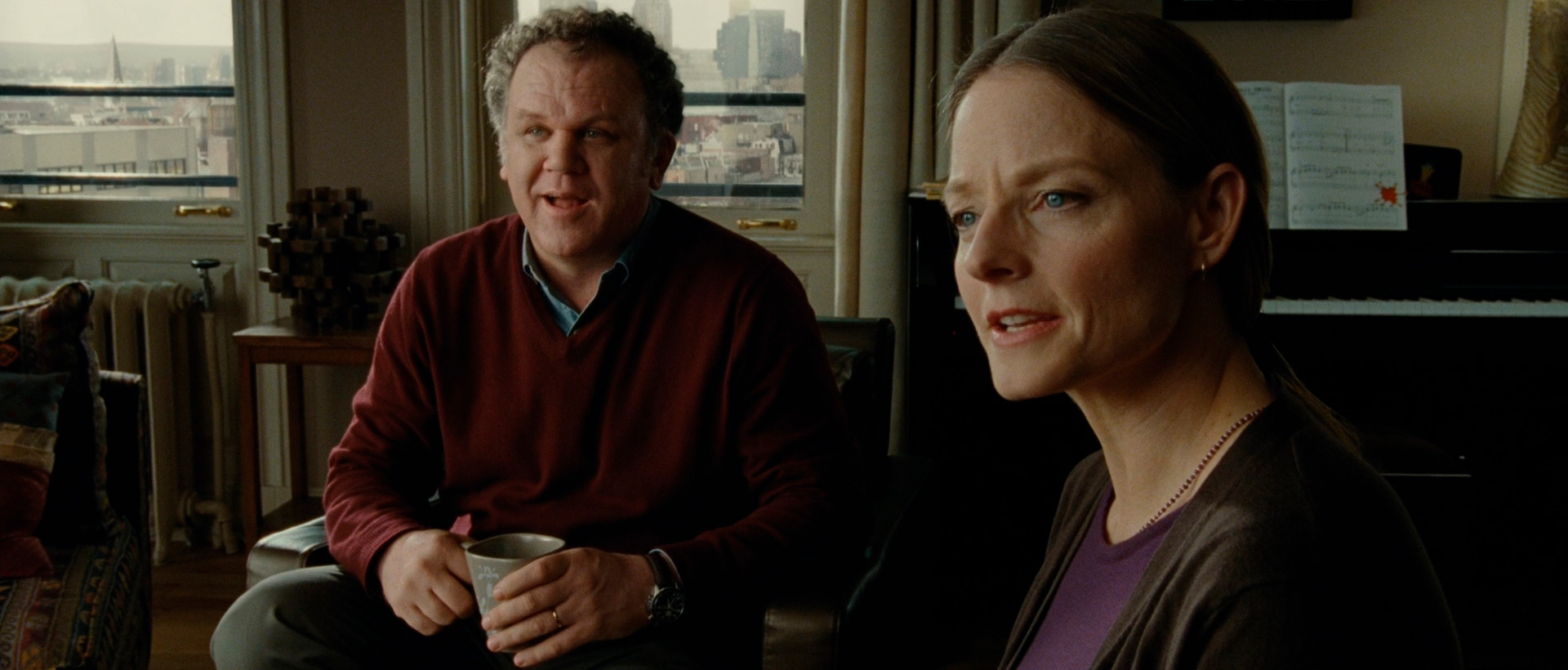 Джоди Фостер в роли Пенелопы, корчащей из себя большую интеллектуалку и озабоченную судьбами всего мира, - отлично, особенно когда ее стали выводить на чистую воду и она начала защищать свои убеждения (или то, что она принимает за убеждения) уже на грани истерики. Где-то читал, что Фостер и Уинслет сильно переигрывали, - вот не согласен с этим ни разу. Наоборот, соответствующие эмоции были показаны очень достоверно.