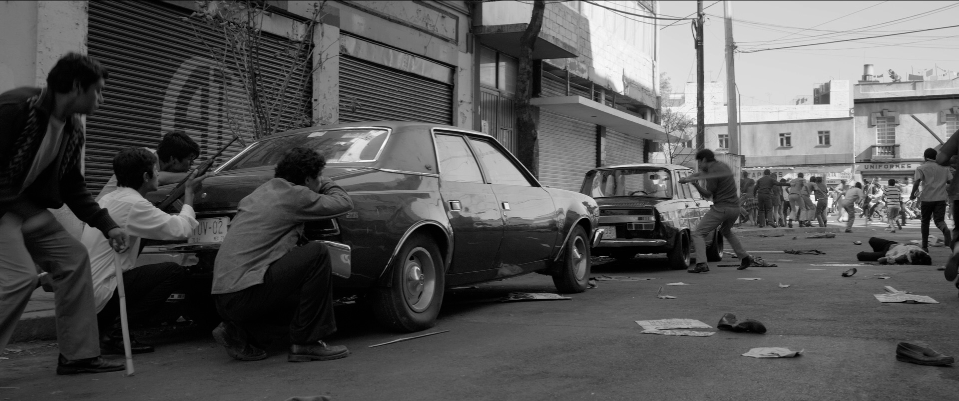 И там еще есть эпизод, когда Клео приезжает в некое поселение в поисках своего гопника Фермина и совершенно случайно оказывается на тренировке тогдашних мексиканских "тонтон макутов" - "Лос-Альконес", состоявшего из спортсменов, бандитов и откровенных преступников. Именно это формирование принимало участие в расправе над студентами.