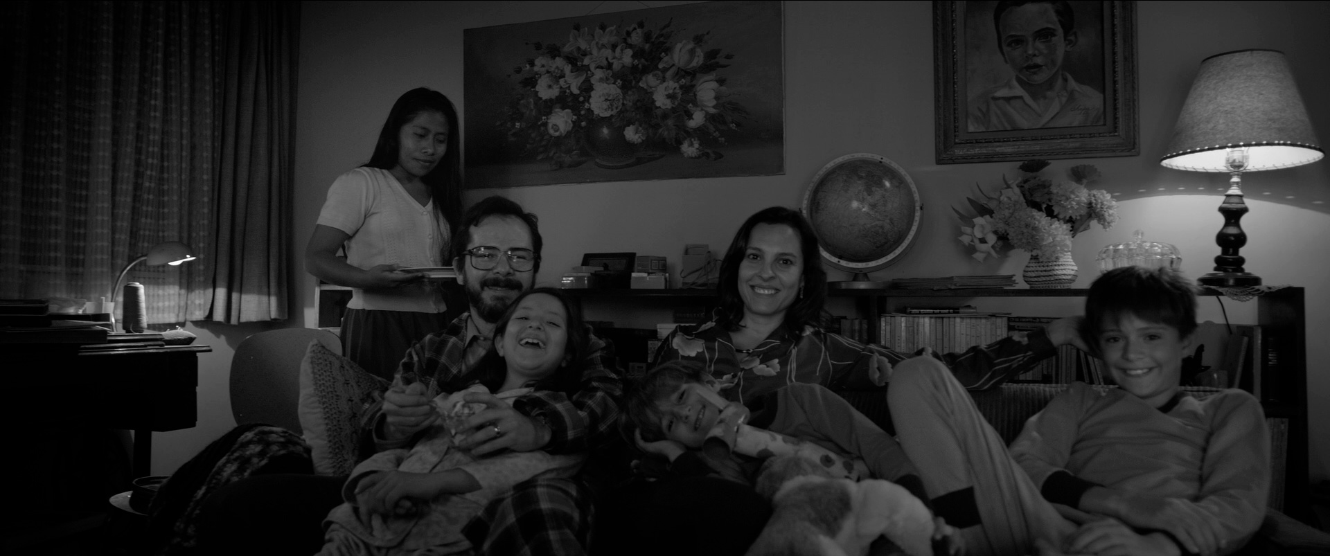 Семья держит прислугу - двух девушек коренной народности: Клео (Ялица Апарисио) и Аделу (Нэнси Гарсиа Гарсиа). Адела в основном занимается готовкой, а Клео ухаживает за детьми, общается с хозяином и хозяйкой, сдерживает чересчур активного пса Барраса, которого, судя по всему, на улицу никто не выводит, поэтому он оставляет продукты своей жизнедеятельности во внутреннем дворике за воротами, который используется как гараж для машин сеньоры Софии и доктора Антонио.