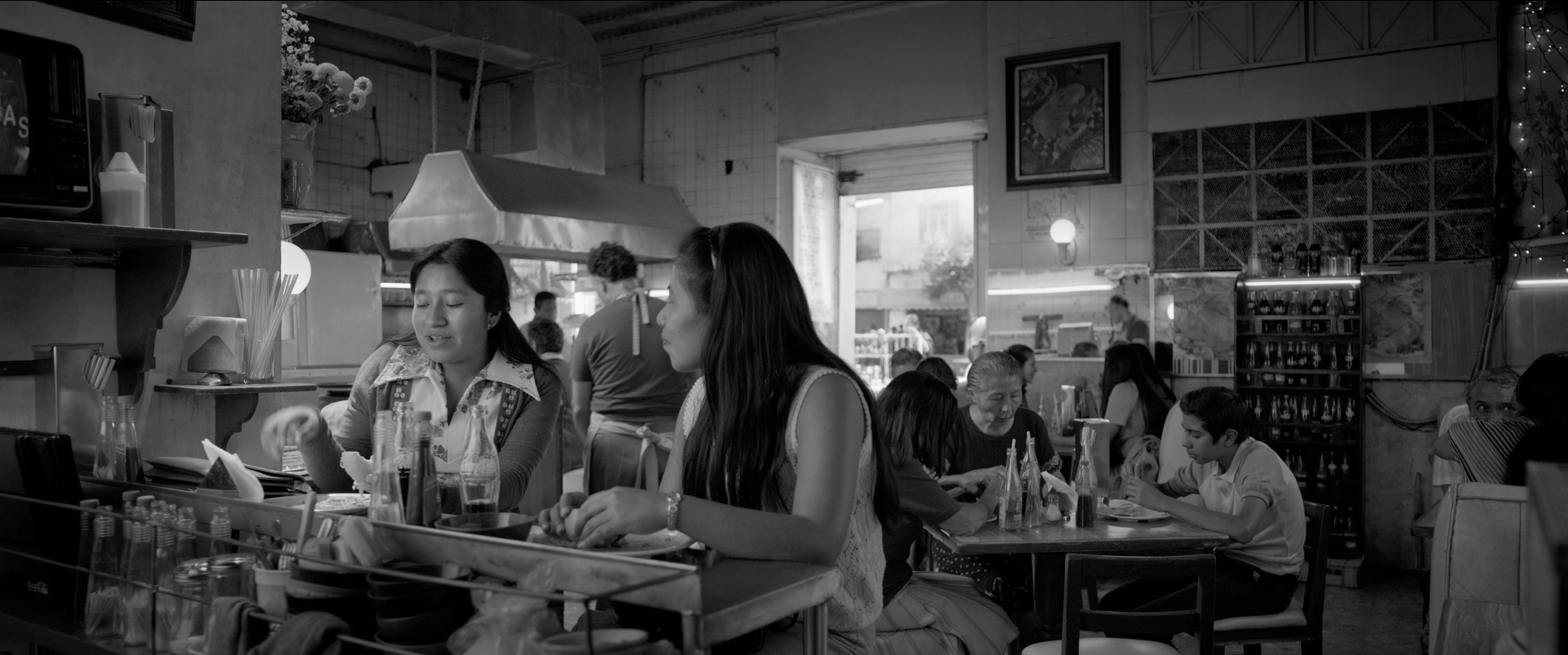 В фильме много отличных визуальных образов, которые легко считываются теми зрителями, которые вообще умеют обращать внимание на подобное: самолеты, часто показываемые в кадре, крыша, где Клео гладит белье (этой крышей все начинается и все заканчивается), двор за воротами, интерьеры дома, старинная усадьба, куда семья приезжает на Рождество, побережье Мексиканского залива, в котором разыгрались волны.