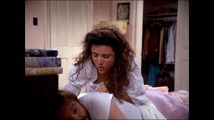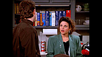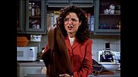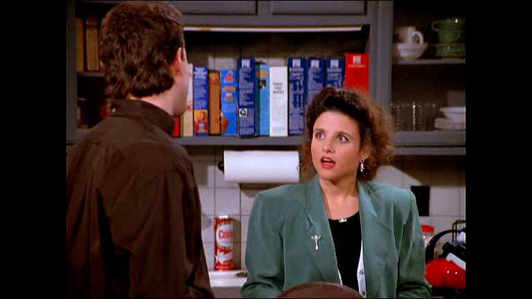 Джулия Луи-Драйфес - изумительна! Ее Элейн - взрыв эмоций и просто море обаяния! Элейн не стесняется говорить то, что она думает, из-за чего нередко попадает в сложные ситуации. А уж ее вечные поиски идеального мужчины и размышления о том, заслуживает ли данный персонаж "одноразовой губки" (средство предохранения) - это просто прелесть. Характер получился настолько симпатичный, что даже когда Элейн вдруг снова начинает клеиться к Джерри (она вдруг выяснила, сколько тот зарабатывает) - ее образ от этого ничего не теряет: ну редкого обаяния актриса, просто редкого!