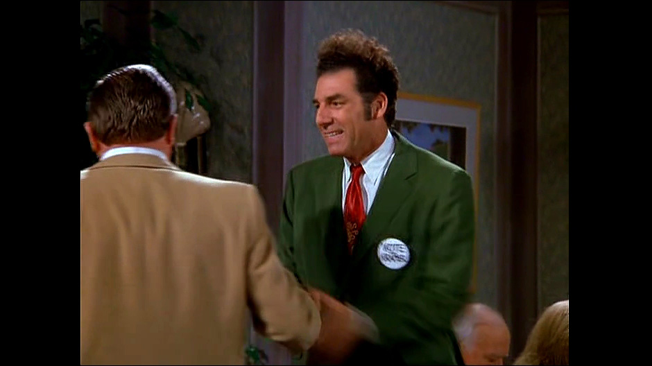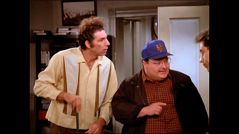 Неистовый Креймер в исполнении Майкла Ричардса - это вообще отвал башки! Совершенно буффонадный персонаж, но в этом вся прелесть. Невероятно оригинальный типаж - такого больше нигде не встретишь, - временами гомерически смешной, особенно когда он танцует или впадает в трясучку от какого-то музыкального произведения. Я в некоторых сценах был вынужден останавливать просмотр, чтобы просто отхохотаться. В нескольких сезонах зрители начинали овации, как только Креймер влетал в дверь Джерри. (В американских ситкомах реакцию зрителей традиционно записывают вживую.) Кстати, на роль Креймера рассматривали Тони Шелуба, Ларри Хэнкина и Стива Виновича.