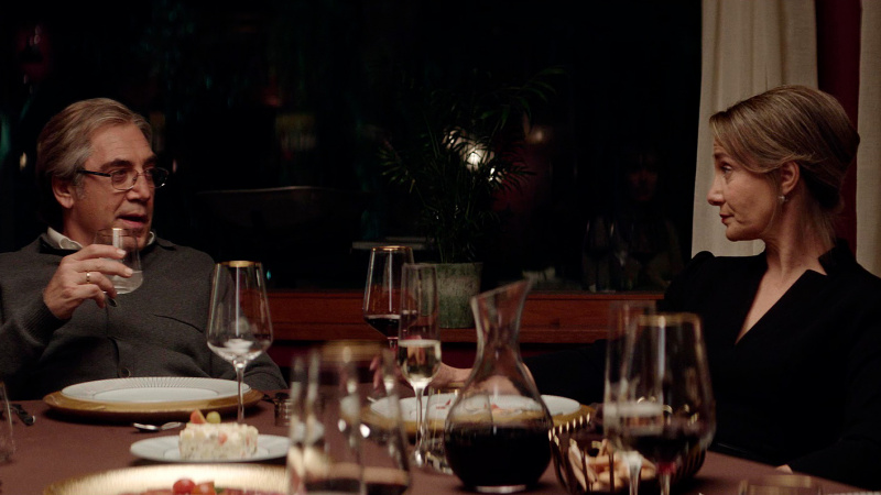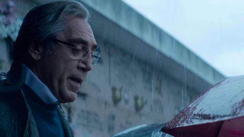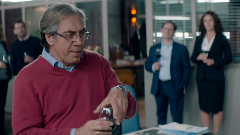 Хавьер Бардем в роли сеньора Бланко - это что-то совершенно невероятное. Бардем отличный актер, у него много замечательных ролей, но тут прям что-то особенное, причем видно, насколько самому актеру доставляет удовольствие изображать этого персонажа, причем изображать именно обаятельного мерзавца, демонстрируя при этом отличную самоиронию. Все эти его якобы сочувственные жесты, поджимание губ, всякие "Миральес, Миральес, Миральес", произносимые бархатным баритоном при увещевании сотрудника, - ну просто блеск! И тут прямо-таки его бенефис, потому что оторваться от его персонажа решительно невозможно!