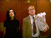 Ну и еще один центральный персонаж картины - классический лузер средних лет по имени Аллен (Филип Сеймур Хоффман). Он - сосед Хелен, и это именно он периодически звонит ей, говоря в трубку всякие гадости. Однако в реальности Аллен ничего не сможет сделать Хелен. Он просто жалкий извращенец с богатым воображением. Впрочем, другая соседка Аллена - толстушка Кристина (Кэмрин Манхейм) - не прочь подружиться с этим мужичком, хотя, когда он узнает о некоторых интересных событиях из жизни этой честной девушки, ей уже мало что светит.