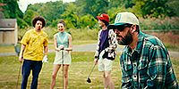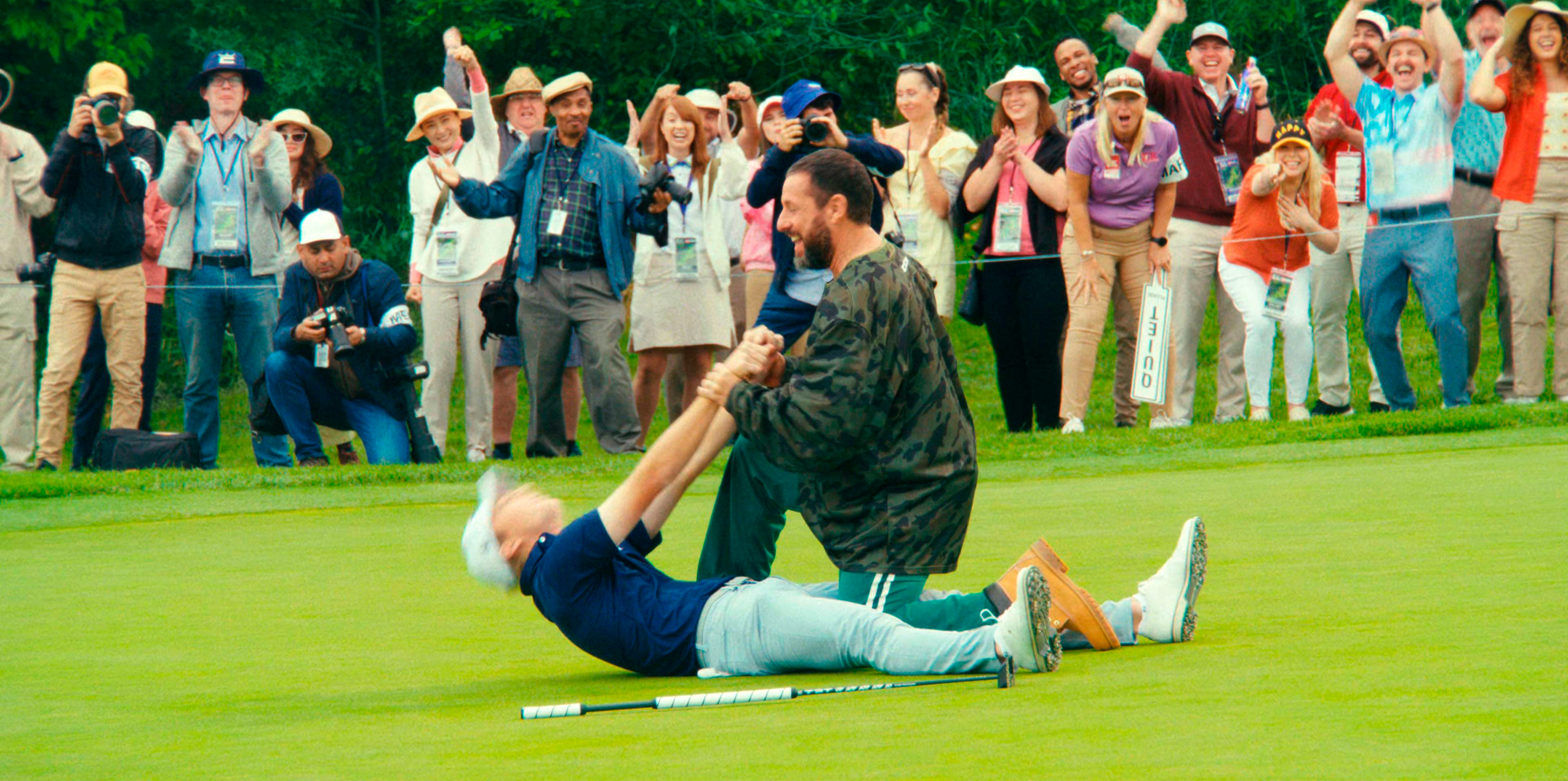 Сам Сэндлер Хэппи играет достаточно ровно, не комикует и не истерит, и тут хотя речь идет именно о комедии, он вносит в картину составляющую некоторой драмы. А кроме того, Гилмор ведь сражается за традиционный гольф, ему отступать некуда: 19-й лунки на поле нет, 19-я лунка, как известно, находится в баре гольф-клуба. Хотя замечу, что идея Манати о гольфе, сопровождаемом какими-то дополнительными соревнованиями и всякими помехами - она классная, такой гольф мог бы стать значительно более зрелищным.