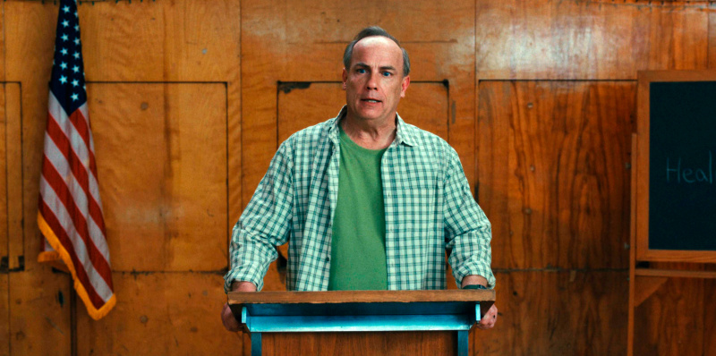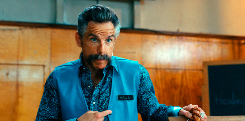 Бен Стиллер играет старого заклятого врага Хэппи Хэла Л., который тут теперь стал руководителем клуба не очень анонимных алкоголиков, и он этих алкоголиков использует в своих самых что ни на есть эксплуатационно-бытовых целях. Вот Стиллер тут комикует по полной программе, но, видимо, оно так и было задумано.
