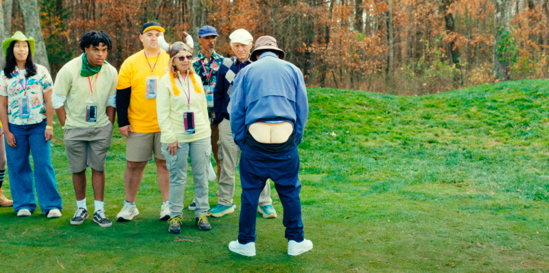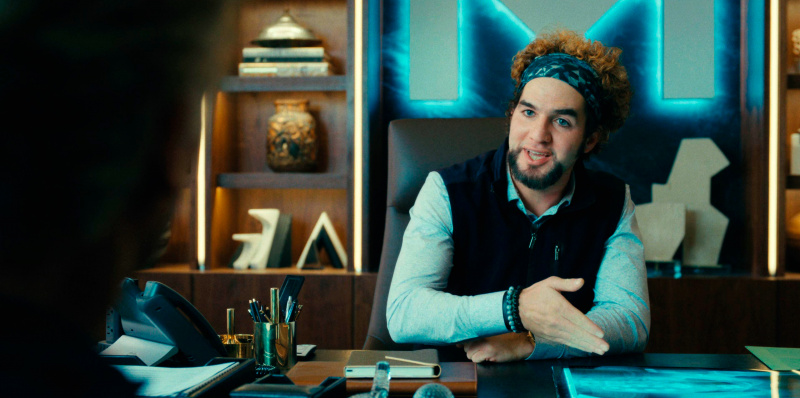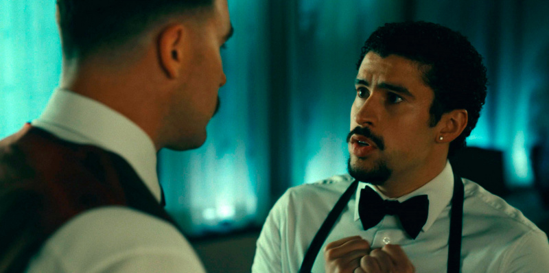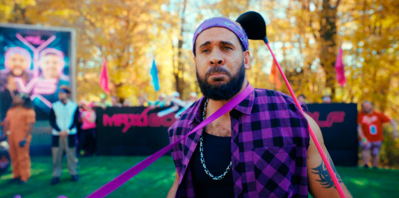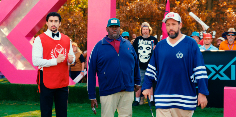 В роли кадди - мальчика, таскающего сумку с клюшками (на эту должность Хэппи подряжает официанта ресторана при клубе Оскара Мехиаса) выступил Бэд Банни, он же Бенито Антонио Мартинес Окасьо - это пуэрториканский исполнитель латинского трэпа и реггетона, он один из 100 самых влиятельных музыкантов мира. Я его раньше видел в фильме "Быстрее пули", где он был очень забавный, ну и здесь его персонаж получился вполне прикольный.
