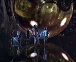 Все, вроде, выяснилось, и можно подниматься наверх, однако в грузовом отсеке обнаружилась странная штука: огромная сфера, состоящая из какого-то переливающегося материала явно внеземного происхождения, причем поверхность этой сферы предметы отражает как-то избирательно. То есть стены грузового отсека она отражает, а исследователей - нет. Просто не хочет. И что делать с этой сферой - ни черта не понятно. Заглянуть внутрь - невозможно, потому что нет ни одного оконца, а зайти в нее - как-то боязно. Вдруг чего не то произойдет.