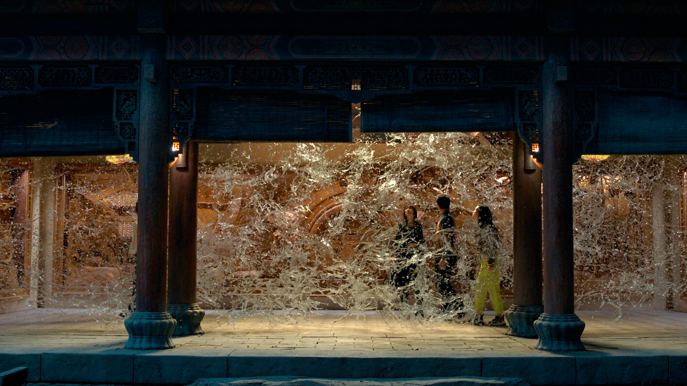 В какой-то момент все резко меняется, когда на едущих в автобусе Шан-Чи и Кэти нападает целая банда хорошо подготовленных людей, руководит которыми Бритвеный Кулак (Флориан Мунтяну) - огромный, атлетически сложенный румын, у которого из правой поврежденной руки выдвигается здоровенное лезвие.