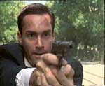 Нам показывают жуткие моменты, когда Каспер собирается садиться в "Мерседес", чтобы сбежать, а Рэй целится в него из пистолета, и Каспер, застыв минут на пять, чтобы Рэю было удобнее прицелиться (а куда ему торопиться? посольство-то уже взорвано) говорит: "Ты не выстрелишь в меня, парень! Кишка у тебя тонка, джеймсбонд хренов! Ха-ха-ха!". Рэй пытается нажать на спусковой крючок, но понимает, что кишка у него действительно тонка. Поэтому Каспер, подождав для верности еще минуты три, прыгает в машину и удирает, по пути врезавшись в столб, потому что он давно не был в Болгарии и забыл, как по-болгарски называется знак "Stop".