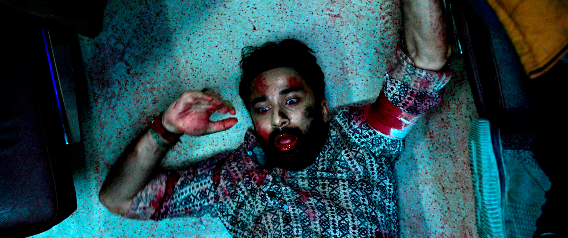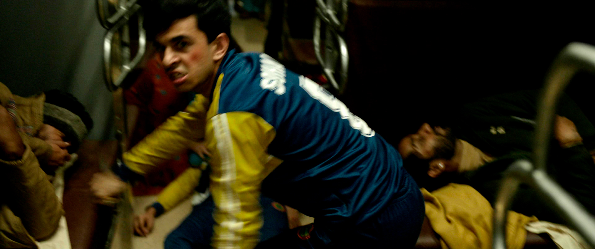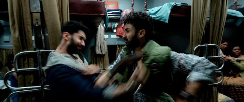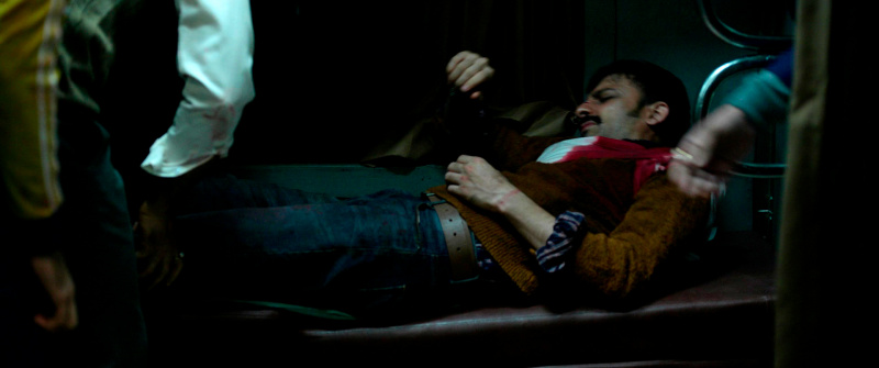 Поставлено это все более или менее реалистично - чисто с кинематографической точки зрения, конечно. Потому что при том количестве самых разнообразных травм, которые тут получает Амрит, он не дожил бы и до середины фильма. Но это кино, поставлено это все динамично и зрелищно, и вот это кровавое рубилово в поезде под временами слегка безумный саундтрек смотрится очень эффектно.