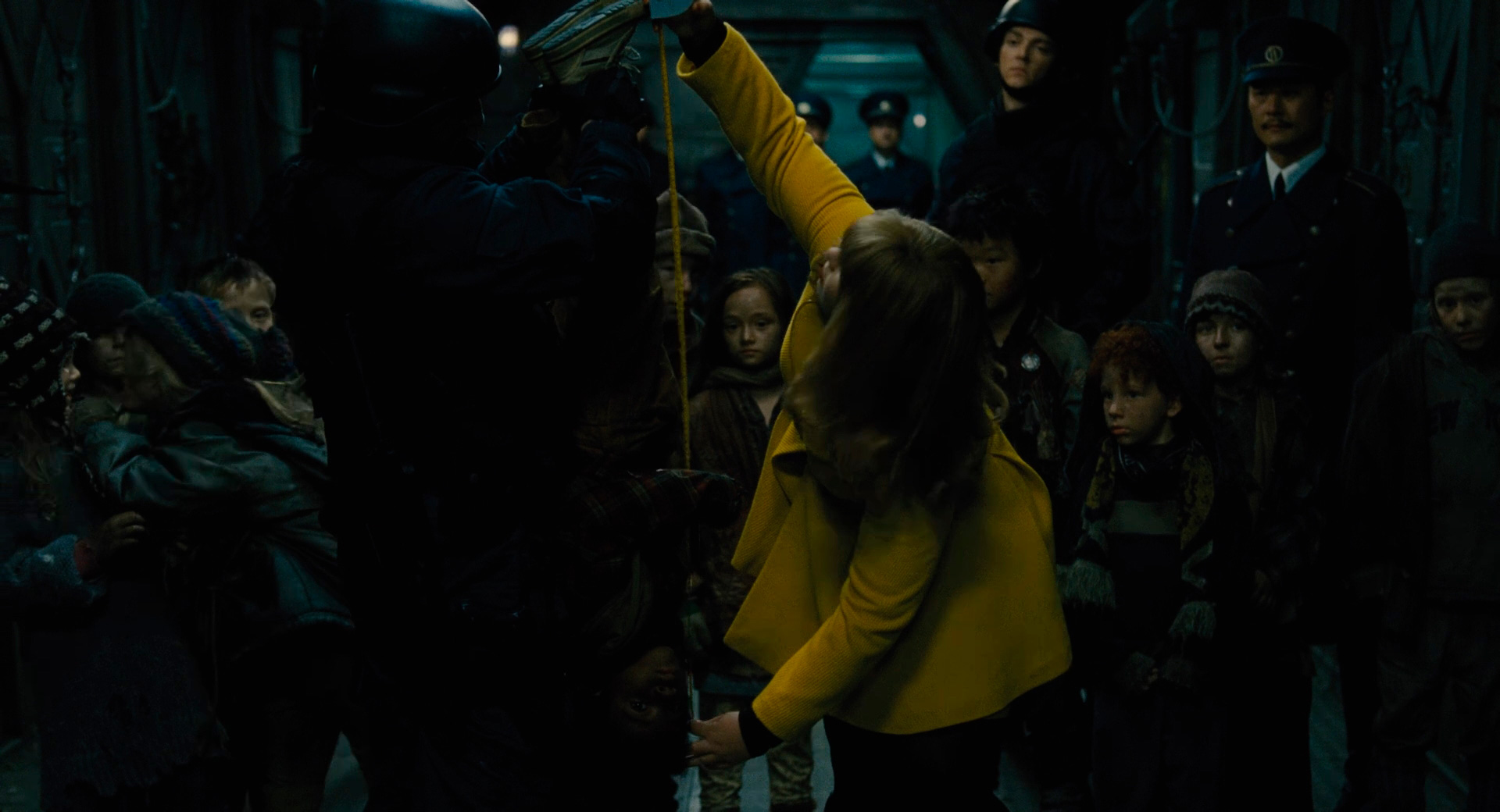 Объяснения о том, зачем вообще в поезд пустили эту низшую касту, которую нужно кормить - они были фееричные. Низшая каста должна спариваться, рожать и поставлять детей до пяти лет. (В начале как раз и показывается, как солдаты Уилфорда забирают нескольких детей.) Дети нужны для того, чтобы... ремонтировать Священный Двигатель. Они там внутри двигателя полуголые что-то там делают: оборудование меняют. В работающем двигателе. Места там мало, так что годятся только дети до пяти лет. Ну, вот детишек-то быдло и поставляет, для того его здесь и завели.