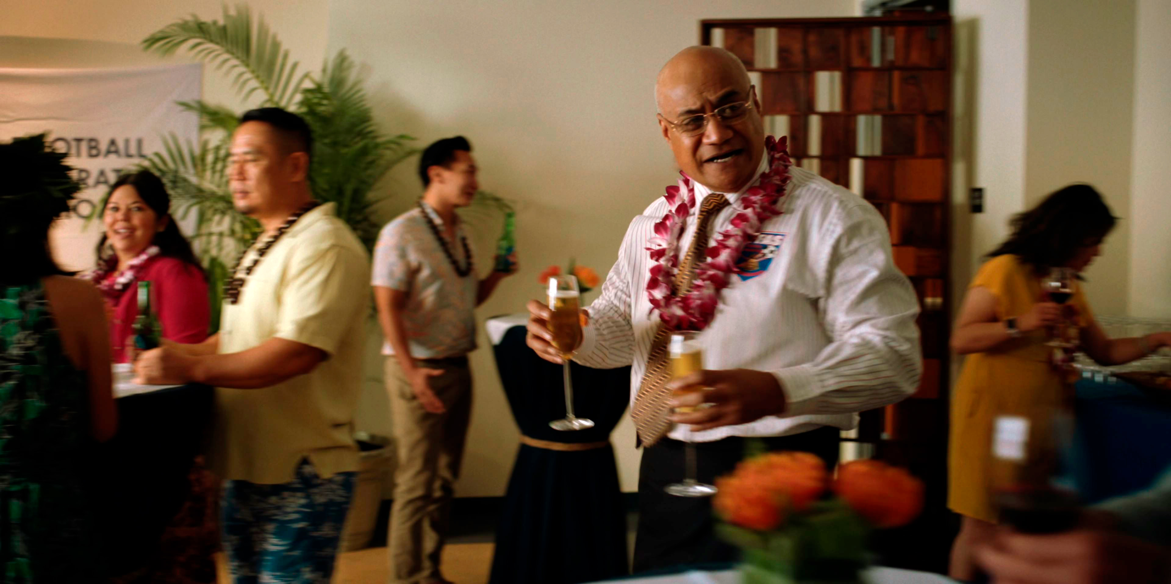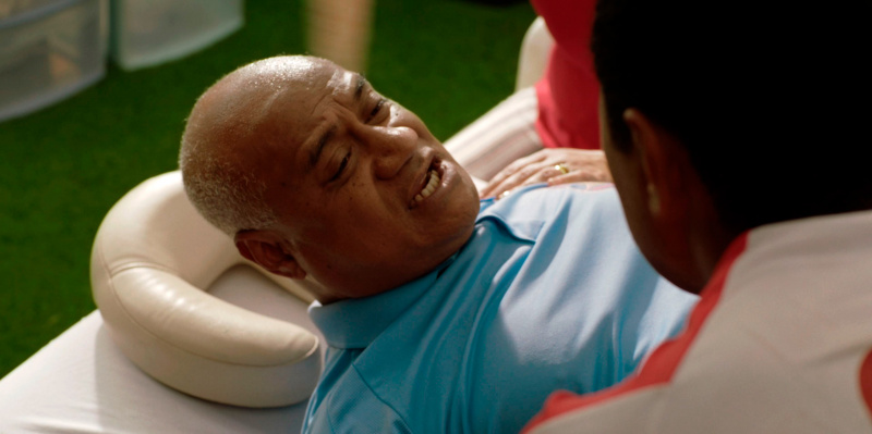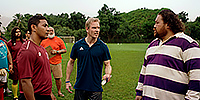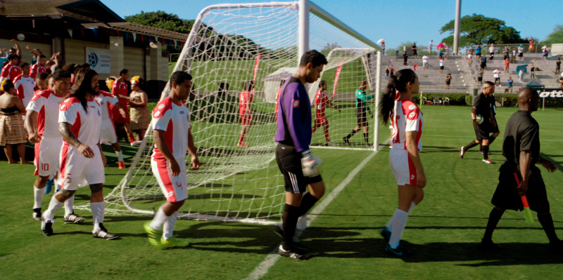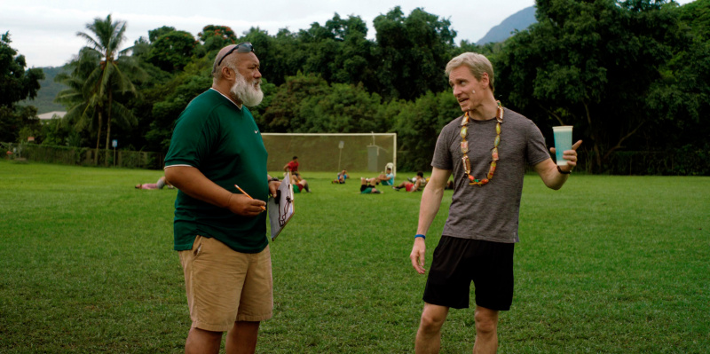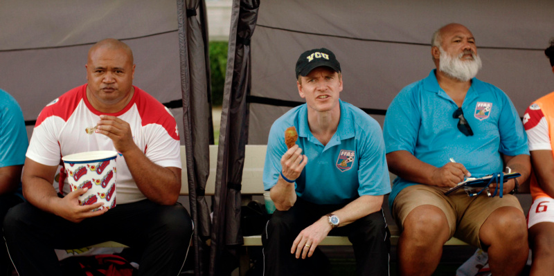 Из остальных персонажей там самый интересный - Тавита Таумуа, директор футбольной федерации Американского Самоа, который кроме этой должности выполняет и много других функций: все-таки Паго-Паго - это маленький остров. Его сыграл Оскар Кайтли, и я не знаю, насколько экранный образ соответствует реальному человеку, но в картине Тавита получился человеком очень симпатичным, с добродушным характером и мягким юмором. Плюс - с очень забавным произношением. И у Кайтли настолько классный персонаж получился, что я бы не отказался посмотреть фильм с ним в главной роли.
