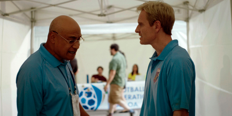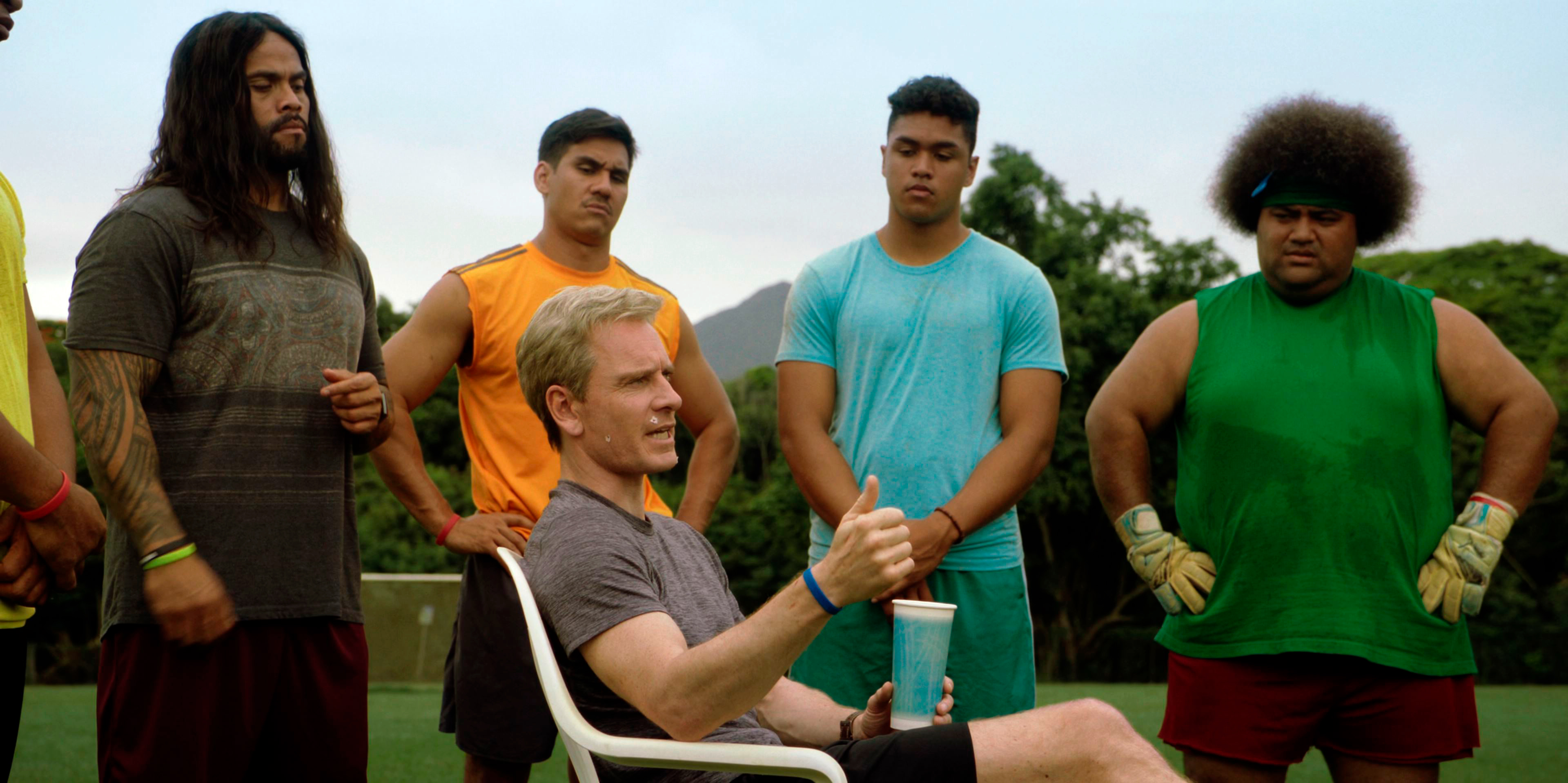 Персонаж Майкла Фассбендера - с одной стороны, несколько неприятный. Он срывается на футболистах, он подвержен приступам гнева, и он, конечно же, резко контрастирует с людьми, населяющими остров. Однако, с другой стороны, получается так, что команде именно не хватало такой "жесткой руки", которая может заставить их и начать тренироваться по полной, и играть в командный, а не индивидуальный футбол, так что постепенно они притираются друг к другу.