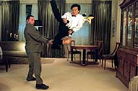 Увы, Джеки Чен - из группы второго типа. Я не собираюсь его осуждать, потому что в Гонконге он и за всю жизнь не заработал бы столько, сколько получает за роль в одной единственной голливудской поделке, однако в Голливуде старый Джеки Чен умер - это неоспоримый факт. А ведь начало агонии было довольно пристойное. "Час пик" - весьма забавная комедия, которую я посмотрел с большим удовольствием и еще порадовался тому, что первое крупное появление Джеки Чена в штатовском фильме выглядит настолько прилично. Правда, это все равно был уже не прежний Джеки Чен - потому что главная роль в фильме все-таки принадлежала Крису Таккеру, а Джеки там был нечто вроде экзотического приложения, - однако Джеки там вполне ностальгически помахал руками и ногами, а также сверзился с большой высоты, сотворив весьма впечатляющий трюк, так что все, можно сказать, было в порядке.