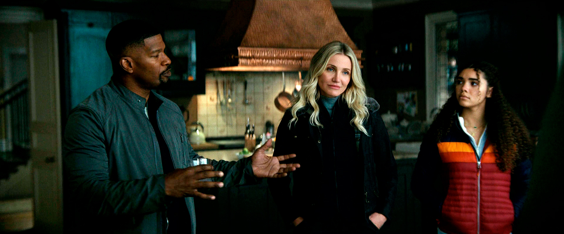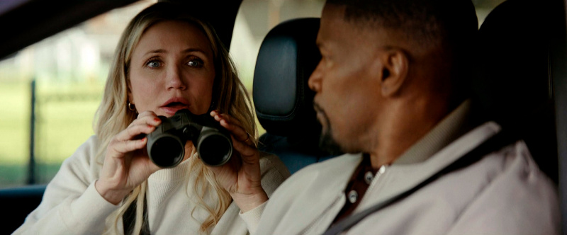 Кэмерон Диас явно с удовольствием снимается в этом боевичке, в свои пятьдесят два года демонстрирует отличную физическую форму, и мы с Бубликом счастливы сказать, что ее лицо не превратилось в обколотую ботоксом застывшую маску, что наблюдается у некоторых других актрис (мы не будем указывать на Николь Кидман и Сандру Буллок). Так что у Кэмерон все нормально с мимикой, и она на пару с Джейми Фоксом и юморит вовсю, и отвешивает крупных люлей всяким негодяйским мужчинам, говорящим на каком-то явно славянском языке, который мы с Бубликом не смогли идентифицировать.