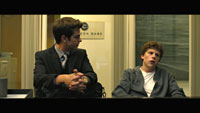 Весь фильм Цукерберг выставляется законченной сволочью. В конце фильма, например, очень прозрачный намек, что это он подставляет Шона Паркера, вызвав полицию на вечеринку. Визитки, унижающие сотрудников и т.д.
