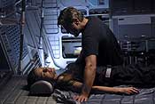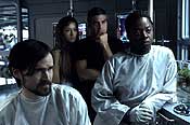Затем фильм появился во всяких жутких экранных копиях, и его тут же начали обсуждать. Общее мнение гласило: "Содерберг снял какой-то кошмар: краски синие, ни черта не видно, а герои весьма расплывчатые". Впрочем, подобные отзывы можно услышать о любых фильмах, посмотренных в экранной копии, поэтому я на них не покупался. Разрыдаться мне пришлось только один раз, когда я услышал, что журналисты "Московского комсомольца", спеша создать "сенсацию", дали посмотреть помойную экранную копию "Соляриса" Донатасу Банионису (напомню, он играл Криса в фильме Андрея Тарковского) и Наталье Бондарчук (играющей Хари, которая в нынешнем "Солярисе" зовется Рея), чтобы послушать, какие слова они скажут по поводу этого творения Содерберга.