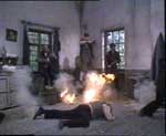 Кстати, в некоторых моих рецензиях упоминается зажженный  камин, порхающий вокруг влюбленной парочки, и некоторые читатели интересовались - что это за символ такой. Так вот, это как раз хохма из "Совсекретно". Первое объяснение в любви между Ником и Хилари состоялось на чердаке дома, причем рядом с ними потрескивал зажженный камин, а второе объяснение состоялось во время прыжка с парашютом, но Цукеры с Абрахамсом не могли оставить парочку без камина, создающего романтическое настроение, поэтому зажженный камин порхал рядом на парашюте.