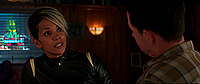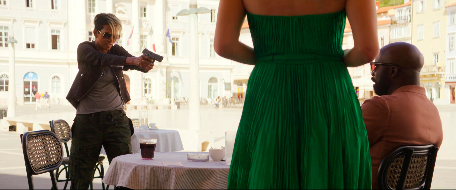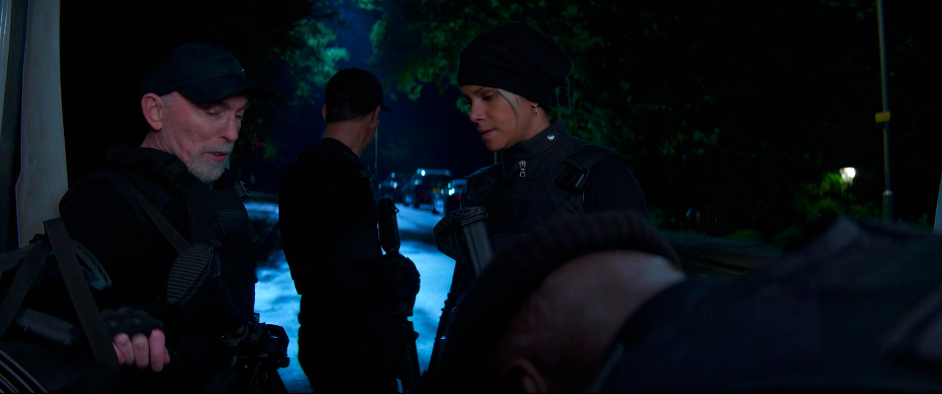 Хэлли Бэрри я последний раз видел вроде еще в третьем "Джоне Уике", где она очень бодро бегала с собачками, дралась и стреляла. И здесь она довольно бодро бегала, дралась и стреляла. Не хуже, чем в третьем "Джоне Уике". А ей, между прочим, под шестьдесят (оба-на, так мы с ней одного года рождения, офигеть), и она пережила три официальных развода, не считая неофициальных, причем от последнего развода её муж не опомнился до сих пор. А она при всем при этом ухитряется отыгрывать боевые сцены так, что они даже слегка похожи на боевые.