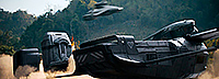 Я бы к этому добавил "Аватар" (подлые военные бьются с аборигенами, а полковник Хоуэлл - эдакий лайтовый вариант полковника Куаритча), "Район № 9", "Дитя человеческое" (мужчина спасает ребенка), "Золотой мальчик" и, конечно же, российскую "Кибердеревню", потому что боевые роботы, которые не имитаторы-андроиды, они в один в один как будто из "Кибердеревни", сравните сами - робот из фильма и робот из "Кибердеревни".