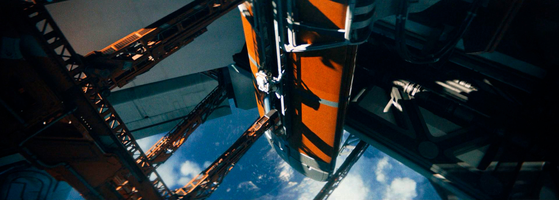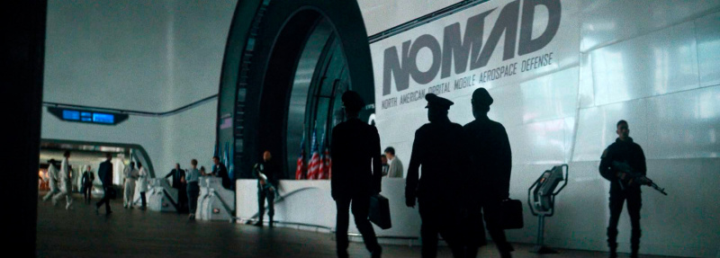 Одновременно с этим, с точки зрения спецэффектов хорошо сделаны эти имитаторы - человекообразные роботы, у которых только задняя часть головы показывает их искусственное происхождение, также вот эта высотная аэрокосмическая платформа NOMAD (North American Orbital Mobile Aerospace Defense) - она производит очень серьезное впечатление.