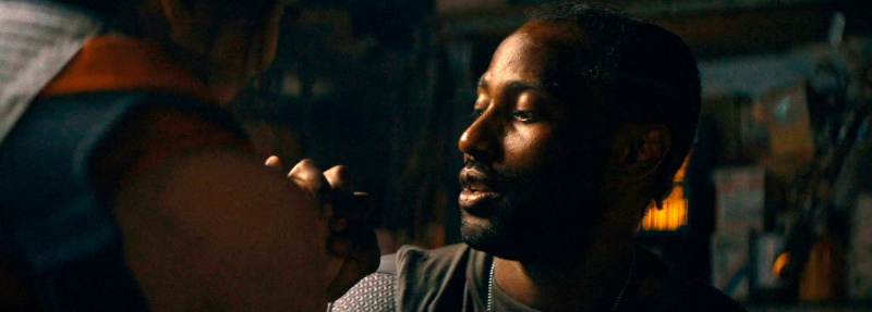 С точки зрения актерской игры здесь все, скажем так, довольно скромно. Джон Дэвид Вашингтон (да-да, сын Дэнзела Вашингтона) - актер, в общем, неплохой. И он здесь примерно такой же, как и Сэм Уортингтон в "Аватаре". Вот в "Черном клановце" он мне понравился, а здесь - ну, примерно так же, как его роль в "Доводе" Нолана, где чисто со сценарной точки зрения у актера мало было возможности что-то продемонстрировать. Но в варианте "фильм без звезды", где Вашингтону пришлось тянуть главную роль - он, в общем, справился, и никакой камень я в него не кину.