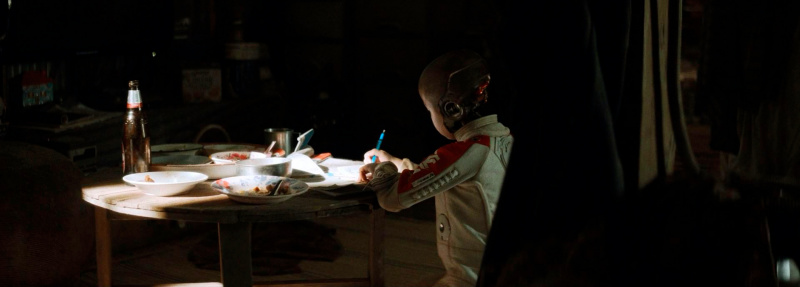 Сцена 2: Местоположение ГГ и ребенка ИИ обнаруживают старшие ИИ. Поскольку задача у "старших" спасти ребенка, то, для начала они палят по дому с ГГ и ребенком из крупнокалиберного оружия с самолетов. (П.С. во всех сценах, где ИИ "пьітается" спасти "ребенка" он начинает с попьітки его убить. Закидьівает гранату в сарай, подкидьівает бомбу-ловушку в мороженое и т.д.). Загнав ГГ на берег, его окружают, дают по голове и забирают ребенка. Следующая сцена: ГГ приходит в себя в клетке на корабле. Командир андроидов начинает ни с того, ни с сего расказьівать в чем план и что случилось в прошлом, при єтом прямо при ГГ прикручивает к пистолету глушитель что б убить ГГ. У меня в єтот момент прям чуть голова не взорвалась от вопросов. Зачем тьі ему все рассказьіваешь, если собираешься его убить? Почему тьі не убил его там на берегу? Почему вьі пльівете на корабле, если у вас есть авиация? Ответ скорее всего в том, что во-первьіх второй сценарист не знал про сцену на берегу. Во-вторьіх нужно бьіло как-то доставить ГГ в то же место, что и ребенка, заодно сказать зрителю что тут происходит и показать, что ГГ и его старьій друг ему теперь враг.
