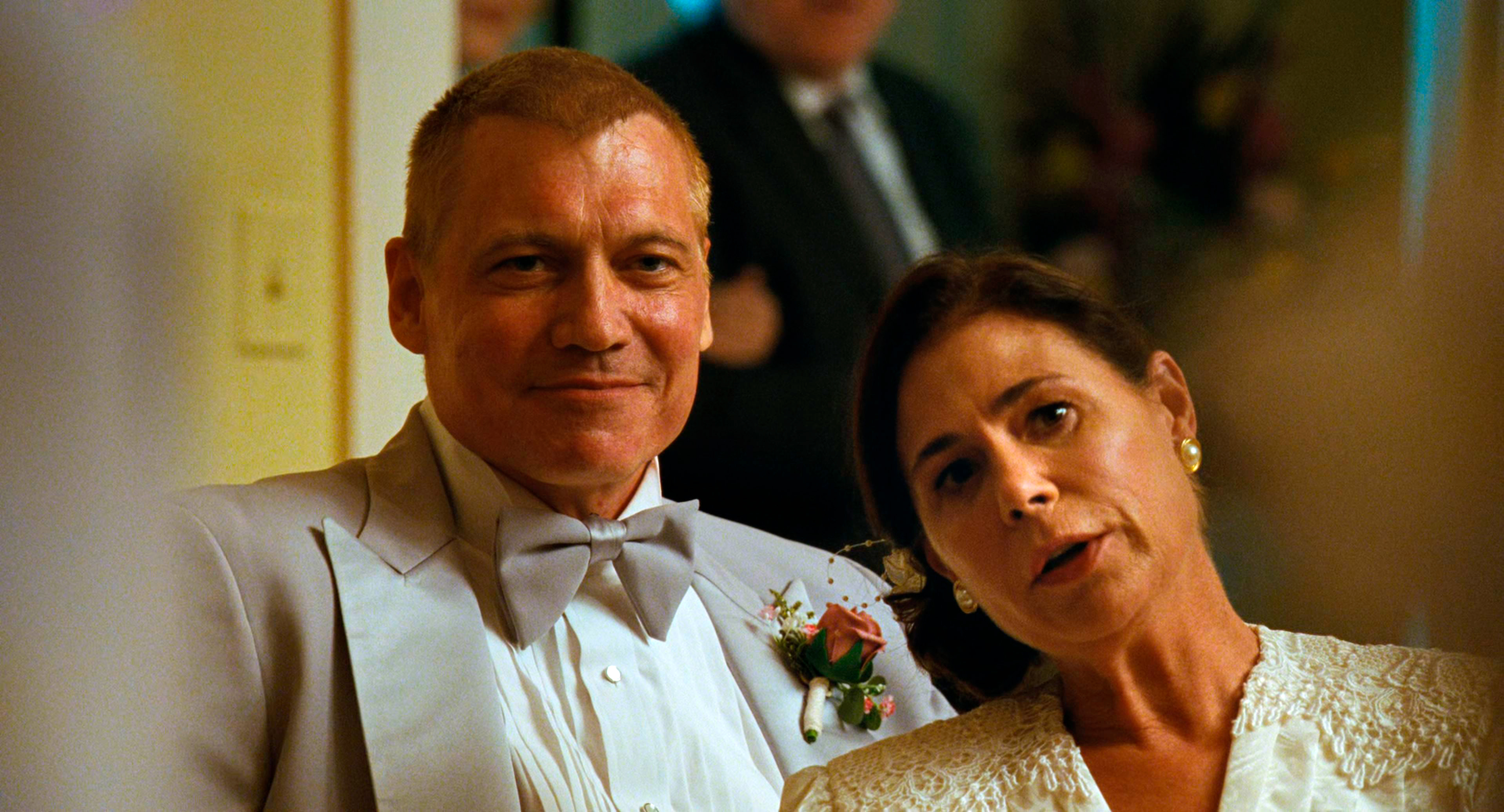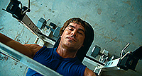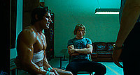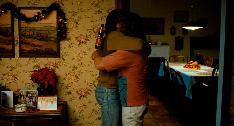При этом повествование в картине и ведется от лица Кевина, и именно он тут - главный персонаж (по определенным причинам, которые становятся понятны в самом конце). Однако кто он в действительности такой и что вообще собой представляет - мы не знаем. Могучая фигура атлета, забавная стрижка с челкой в стиле "Тупой и еще тупее" (в реальности у протоптипа именно такая и была), страдающие глаза - ну и больше ничего. И даже скупые пояснения Кевина за кадром мало что проясняют.