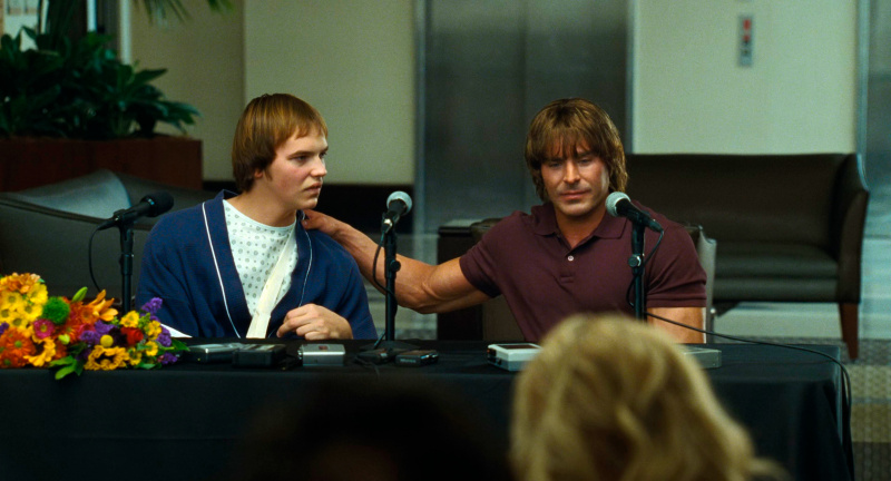 А вот с братьями - легендарными рестлерами-чемпионами - все получилось значительно менее убедительно. Зак Эфрон и Джереми Аллен Уайт (звезда сериалов "Бесстыжие" и "Медведь") проделали большую работу над своей физической формой, чтобы походить на реальных Кевина и Керри фон Эрихов, обладающих выдающимися мускулатурами.