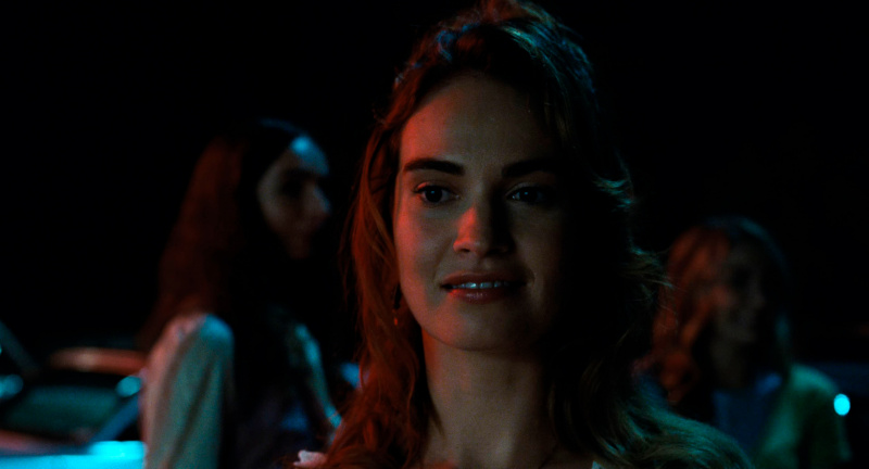 История его знакомства с Пэм, которая потом стала его женой, показана так. У фон Эрихов настолько не было времени ни на что, кроме рестлинга, что они и с девчонками-то не встречались. (Подчеркиваю, это в фильме.) Поэтому шустрая Пэм, которая сама подкатила к Кевину и практически сама пригласила его на свидание - смогла быстро захомутать прославленного спортсмена-девственника. В реальности оно было всё совсем не так (как и большинство из того, что показано в картине), но об этом поговорим в конце рецензии под спойлером). Пэм сыграла очень неплохая актриса Лили Джеймс, но, скажем честно, играть ей здесь было особо нечего.