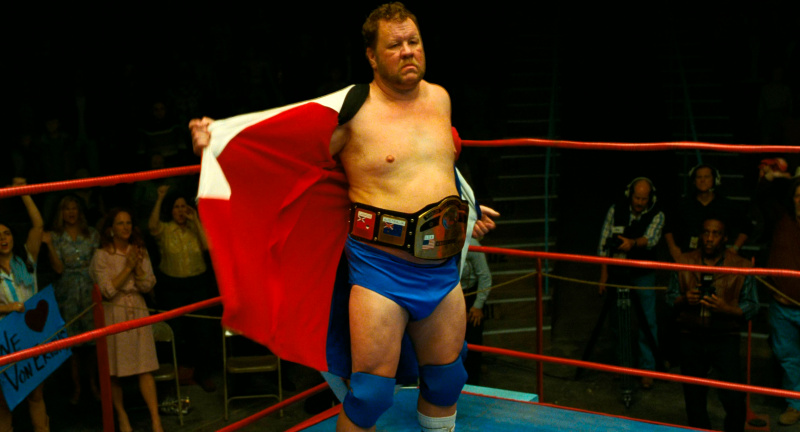 Недоумение, потому что при всех реверансах, что типа там в рестлинге требуется недюжинная физическая подготовка и самоотверженность, как и в цирковой акробатике, например, но почему-то в фильме это подавалось на каких-то странных щщах, совершенно серьезно какую-то "борьбу" с напряженно искаженными лицами показывали, как будто они там реально друг друга мутузят и соперничают. А про то, что это постановка - пара обмолвок между строк. При том, что пресловутое "чемпионство" - результат не этих потешных потасовок, а серьезной работы в мире шоу-бизнеса, и это можно было подать драматично и серьёзно, но вместо этого были потуги на спортивную драму. Всё равно, что снимать биопик про чемпионство актера, играющего Гамлета или Онегина, например, и концентрироваться на том, как они там тыкают шпагами виртуозно или ловко стреляют из пистолета, и чтоб у Лаэрта или Ленского в слоу-мо фейковые мозги летали под драматичную музыку.