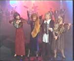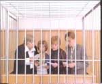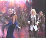 Тут внезапно теткам предлагают выступить в театре Эстрады, чтобы вспомнить молодость. Они называют свой ансамбль "Старые клячи" и идут выступать. Но в зале - вот беда! - сидит только мама их руководителя (которого играет Карцев). Тогда тетки поют "Тум-балалайку". Но тут появляется бравый полковник, который нагоняет полный зал своих солдатиков. Тогда тетки оживляются и поют лихую песню о сотовом телефоне с повторяющимся рефреном "Мобильный - дебильный". После концерта начинается великое судилище: Фоменко в лице истца, тетки в клетке как ответчицы и безумно больной на вид Рязанов в роли судьи.