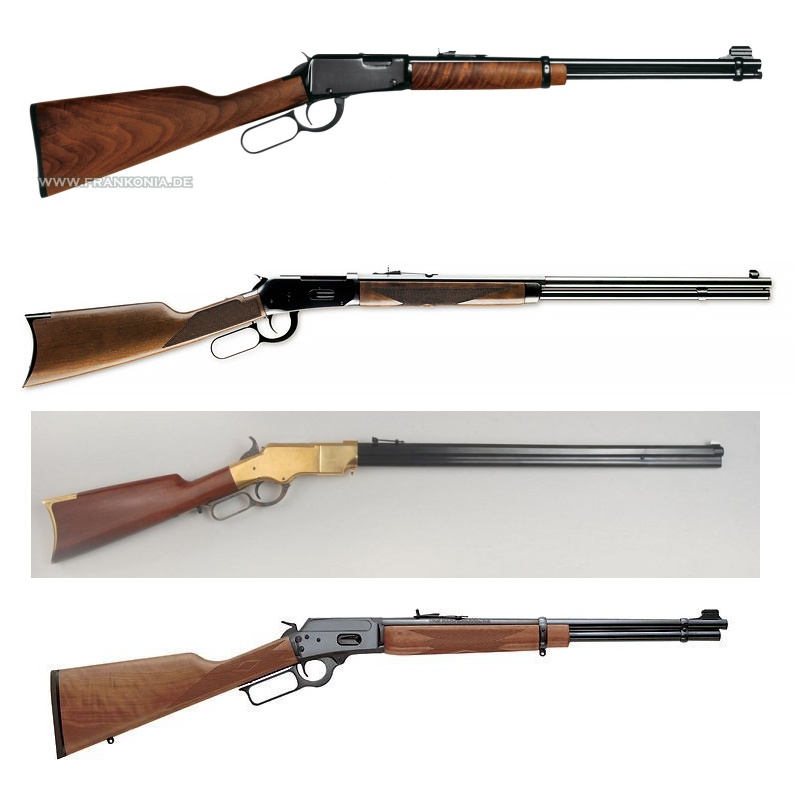 Вот их целое семейство (сверху-вниз, Генри современный, Винчестер 1894, Генри первой модели, Марлин).