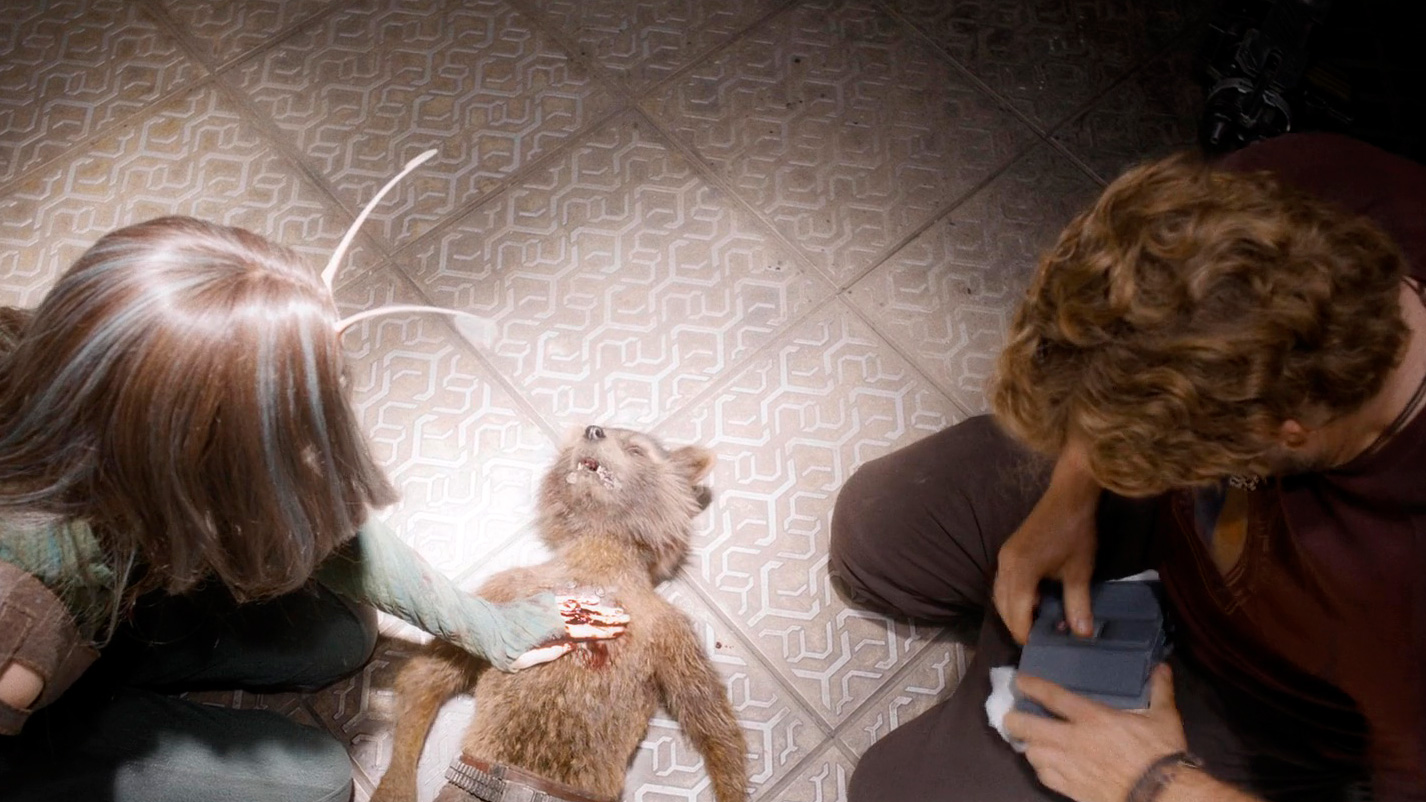 Небуле удалось одолеть Адама, но енот Ракета (Брэдли Купер) получил серьезные травмы. Обеспокоенные Стражи попытались его вылечить, но выяснилось, что они этого сделать не могут из-за встроенного в Ракету чипа смерти, созданного компанией "Оргокорп". И чтобы с этим справиться, они должны отправиться в главный штаб компании за кодом отмены.