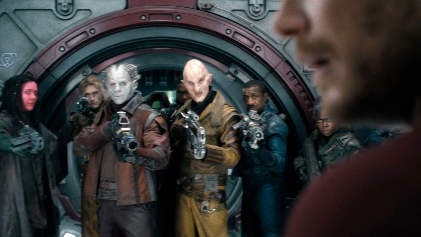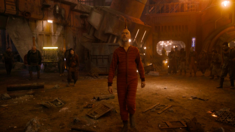 Впрочем, долго так свинячить ему не дали. На Стражей Галактики напало обладающее большими сверхспособностями существо по имени Адам (Уилл Поултер): его создала Верховная Жрица Аиша (Элизабет Дебики) на планете Суверен - специально для уничтожения Стражей.