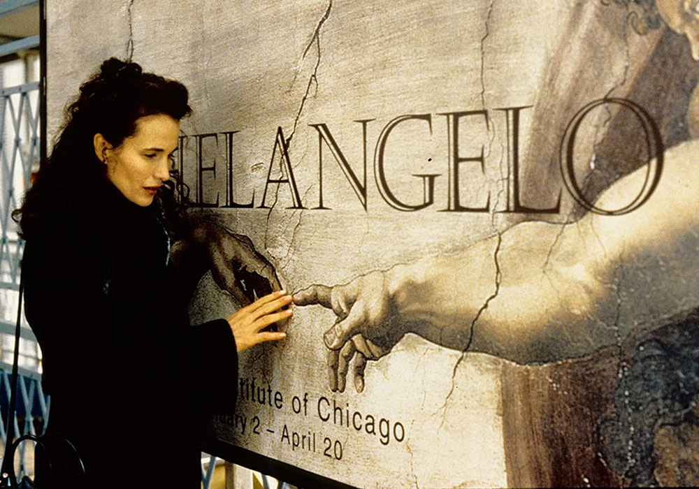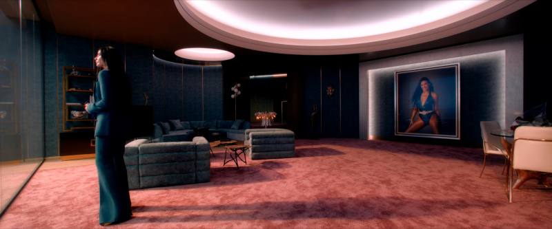 Визуально это поставлено совершенно замечательно (оператор - Бенджамин Кракун). Красочные и яркие интерьеры, огромная квартира Элизабет с панорамными окнами, мастерское и вполне осмысленное (а не как в "Фаворитке") использование сверхшироких объективов - это производит большое впечатление.