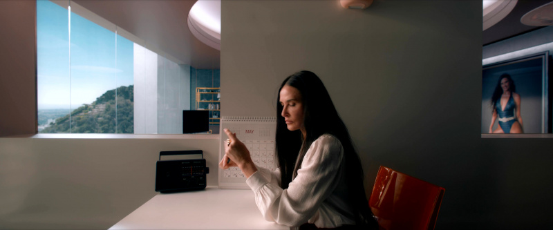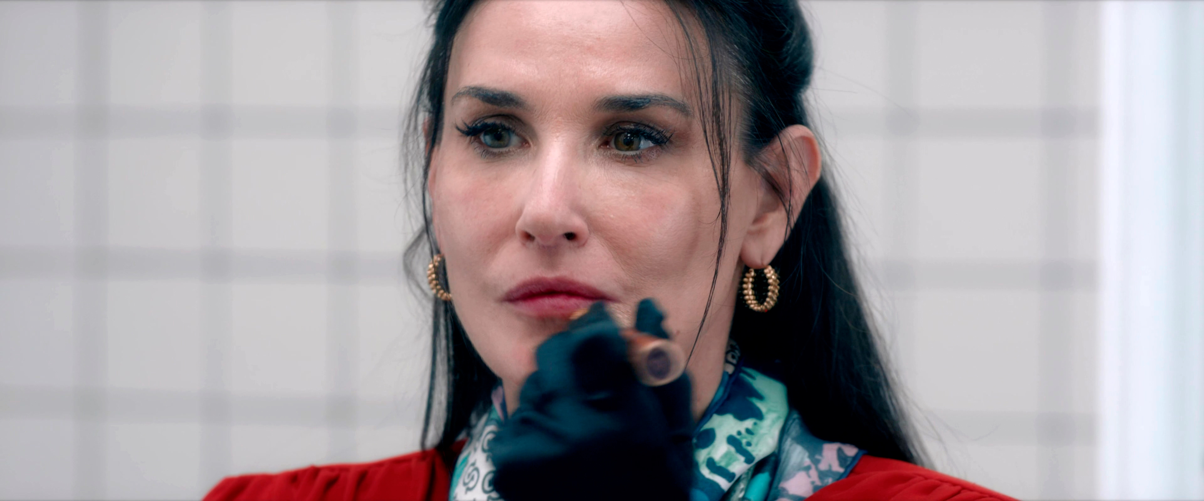 И будучи женщиной, которая строго следит за собой и за своим физическим состоянием,  при этом сняться в боди-хорроре, где с ее телом гримеры и специалисты по спецэффектом выделывают что-то совершенно безумное - это требует полнейшего самоотречения, что Деми и продемонстрировала.