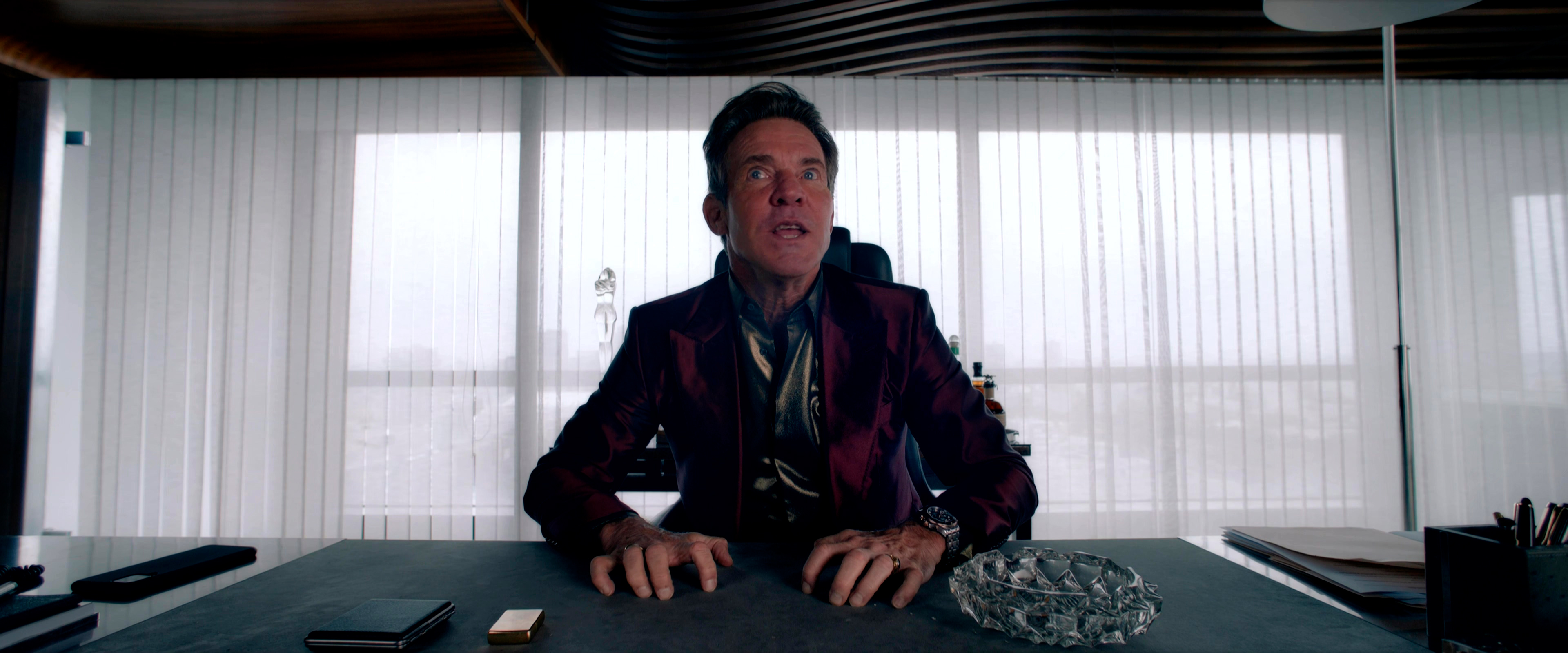 Актер Дэннис Куэйд мне обычно нигде не нравится, но здесь его совершенно гротескный и даже буффонадный продюсер - прямо-таки хорош, персонаж весьма забавный. И да, его зовут Харви - видимо, оммаж такой.