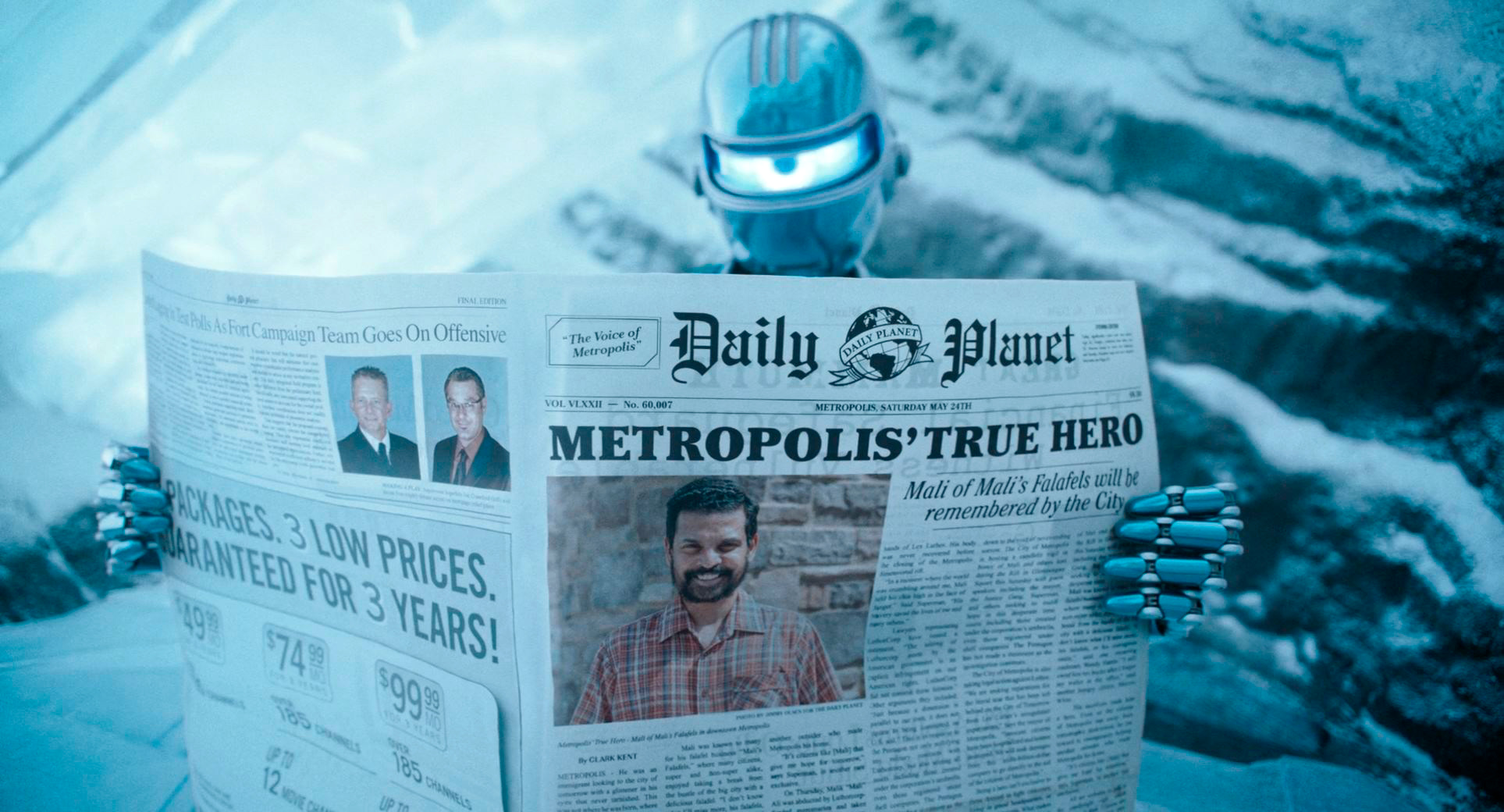 Когда Кларк Кент (Дэвид Коренсуэт) вырос, то он, в целях конспирации, стал жить двойственной жизнью. Днем он работает репортером в Daily Planet, скрывая суперменистую личность с помощью специальных очков, а по ночам и по выходным летает туда-сюда и кого-нибудь спасает.