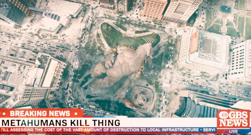 Со зрелищностью и спецэффектами здесь тоже все здорово. Сам Метрополис смотрится очень эффектно, а уж когда его начало разносить в результате определенного происшествия - это было сделано весьма впечатляюще. Бой Супермена с Ультраменом, Крепость Одиночества, личное карманное измерение Лютора, в которое можно попасть через определенный портал, всякие гигантские сущности, которые Лютор напускает на Метрополис (тут сразу вспоминается Морская звезда из шикарного второго "Отряда самоубийц"), песик Крипто, финальные сражения - на это Джеймс Ганн большой мастер, и здесь мы это все получили по полной программе.